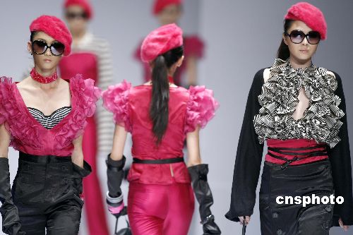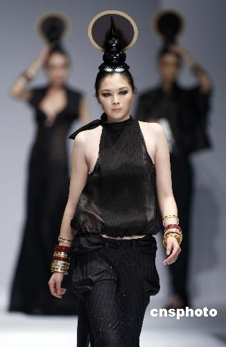 十一月五日,在2007年中國國際時裝周舞臺上,北服—萊佛士國際學(xué)院畢業(yè)作品展示會將學(xué)生們的設(shè)計(jì)理念展現(xiàn)在T型臺上,為觀眾獻(xiàn)上一場視覺大餐。中新社發(fā) 盛佳鵬 攝
