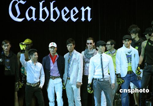 11月4日晚,正在北京舉行的中國國際時裝周08春夏系列活動,卡賓男裝發(fā)布會現(xiàn)場別具匠心地擺出拳擊臺,以彰顯表現(xiàn)激情個性的生活態(tài)度主題?ㄙe服飾中國有限公司藝術(shù)總監(jiān)卡賓,一向信奉“顛覆流行,方能創(chuàng)造時尚”的設(shè)計哲學(xué),他的服裝秀形式變化多端。中新社發(fā) 錢興強 攝