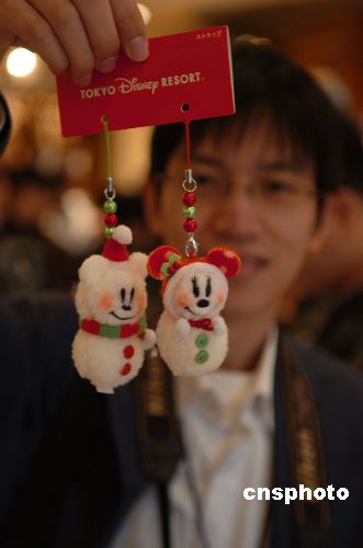 圖為迪斯尼樂園推出今年的圣誕吉祥物“雪人一家”鑰匙掛飾。