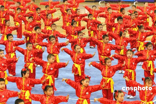 圖為在開幕式上,由百余名兒童組成的表演隊(duì)為在場(chǎng)觀眾奉獻(xiàn)精彩的表演。
