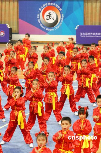 圖:武術(shù)世錦賽開幕 千人同打太極拳(2)