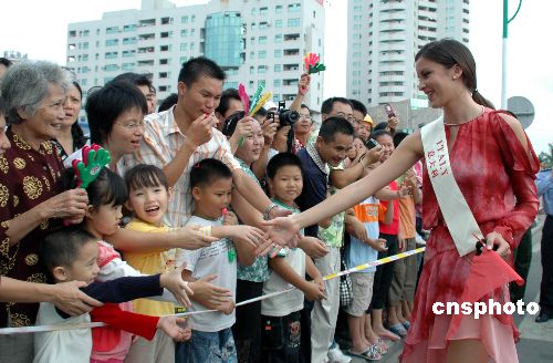 圖為意大利小姐受到三亞市民的歡迎。