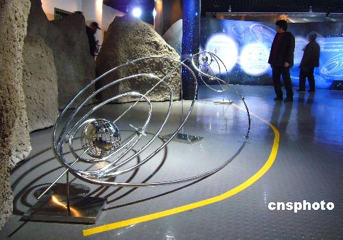 11月28日,全國首個“嫦娥探月專題展”在北京天文館拉開帷幕,“嫦娥一號”1:2的實物模型以及繞月軌道模型成為此次展覽亮點。中新社發(fā) 玉龍 攝