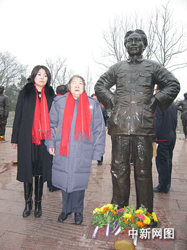 李敏攜女兒孔東梅在毛澤東塑像前與父親合影。淮黎霞 攝