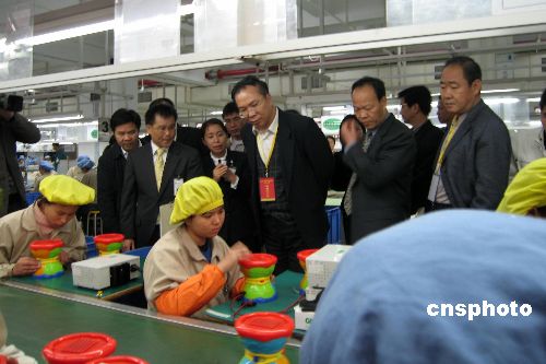 中國(guó)國(guó)務(wù)院新聞辦副主任王國(guó)慶為首的國(guó)務(wù)院驗(yàn)收檢查組十二月二十五日至二十六日在廣州、河源等地,采取聽(tīng)取匯報(bào)、現(xiàn)場(chǎng)隨機(jī)抽查等方式對(duì)廣東省四個(gè)月來(lái)的產(chǎn)品質(zhì)量和食品安全專(zhuān)項(xiàng)整治進(jìn)行檢查驗(yàn)收。圖為驗(yàn)收組在河源一玩具廠進(jìn)行檢查。中新社發(fā) 唐貴江 攝