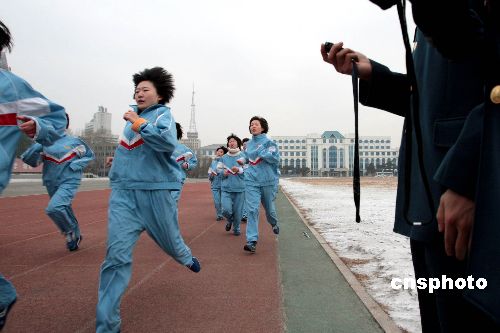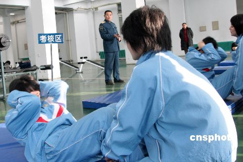 圖為仰臥起坐對(duì)女飛學(xué)員來說是小兒科。