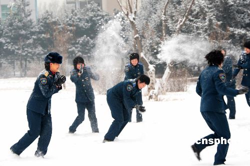 圖為大雪激起了姑娘們的童真,一場雪仗為校園帶來了勃勃生機。