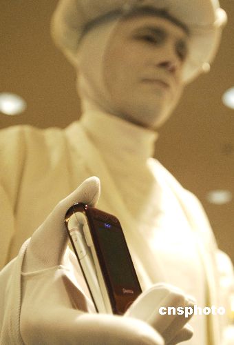 白衣人展示全球最新的概念型手機(jī)。