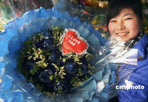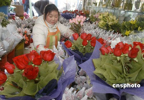 2月13日,安徽滁州的鮮花商店讓各色玫瑰花唱起主角,商家們看好節(jié)日經(jīng)濟(jì),積極備戰(zhàn)情人節(jié)。市場(chǎng)上,紅色玫瑰以?xún)r(jià)廉物美占居份額最多,高檔品種有藍(lán)色妖姬、七彩皇后、綠美人等。中新社發(fā) 王家國(guó) 攝