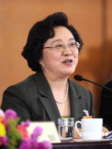 三月六日下午,全國(guó)政協(xié)十一屆一次會(huì)議記者招待會(huì)在北京人民大會(huì)堂新聞發(fā)布廳舉行,主題為“民主黨派中央主席談多黨合作”,中國(guó)八個(gè)民主黨派中央主席共同出席。圖為臺(tái)盟中央主席林文漪。中新社發(fā) 廖攀 攝