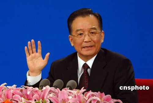 3月18日上午,十一屆全國人大一次會議在北京人民大會堂閉幕,國務(wù)院總理溫家寶于會后率李克強、回良玉、張德江、王岐山四位副總理會見中外記者。中新社發(fā) 王東明 攝