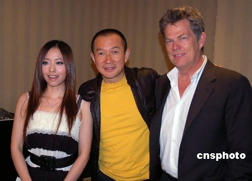 3月19日下午,著名華人作曲家譚盾與美國(guó)著名音樂(lè)制作人大衛(wèi)·福斯特、“超女”張靚穎在北京亮相,向媒體介紹由他與大衛(wèi)·福斯特共同創(chuàng)作、張靚穎和世界著名盲人歌唱家安德烈·波切利主唱的北京奧運(yùn)會(huì)候選主題歌《擁抱愛(ài)的明天》。據(jù)悉,譚盾為了創(chuàng)作這首歌,用了八年時(shí)間進(jìn)行構(gòu)思,經(jīng)過(guò)十八次修改,最終于今年春節(jié)大年初一在美國(guó)洛杉磯錄制完成。這首歌曲堪稱是中西文化相互融合的精典作品之一,并于三月十日北京奧運(yùn)會(huì)主題歌征集的最后一天送交北京奧組委。中新社發(fā) 潘旭臨 攝