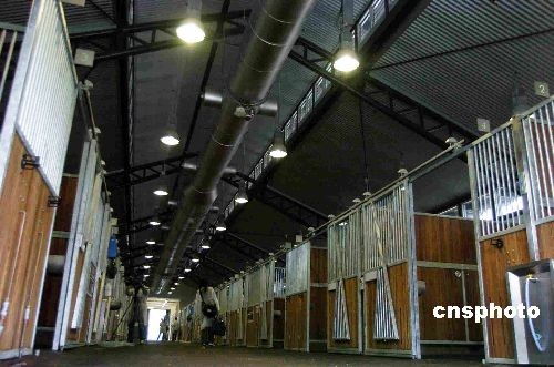 奧運馬房有超過二百個馬格安置馬匹,馬房有空調(diào)系統(tǒng),確?諝饬魍āqR房亦設(shè)有閉路電視系統(tǒng),二十四小時監(jiān)察馬匹狀況。 譚達明 攝