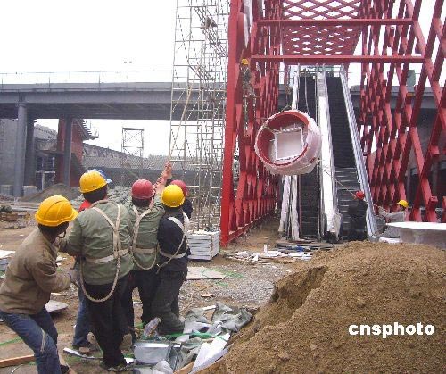 圖:奧林匹克中心區(qū)開(kāi)始安裝吉慶大鼓