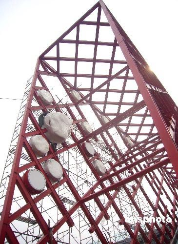 圖:奧林匹克中心區(qū)開(kāi)始安裝吉慶大鼓(2)