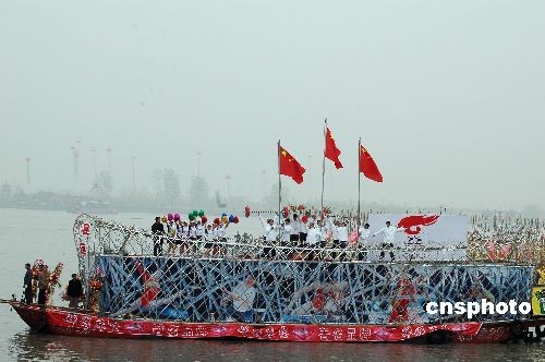 圖:江蘇姜堰“鳥巢”貢船水上迎奧運(2)