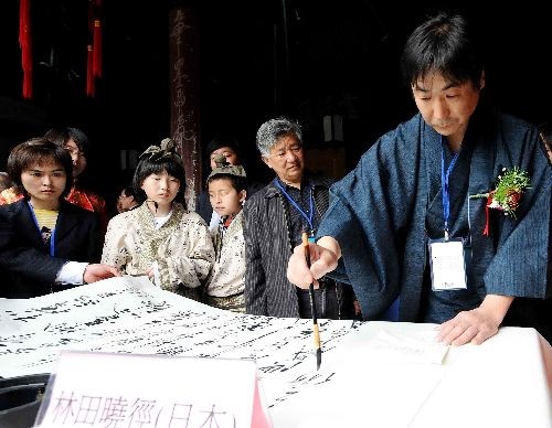 圖:中日韓書法家紹興蘭亭潑墨(2)