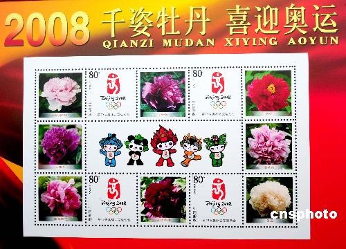 圖:千姿牡丹郵票迎奧運(yùn)