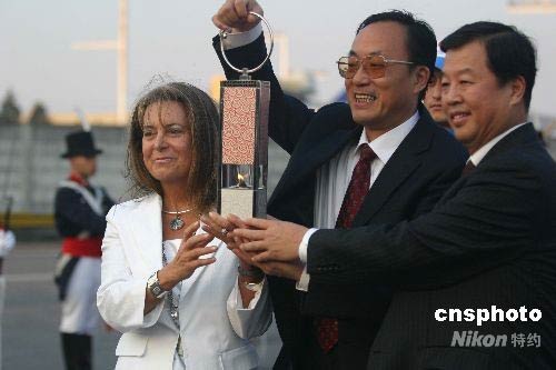 圖:北京奧運(yùn)圣火抵達(dá)布宜諾斯艾利斯
