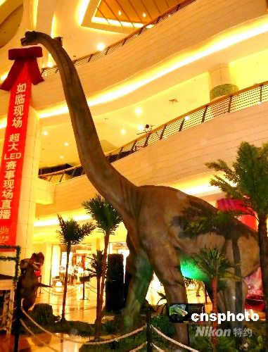 4月11日,為慶祝中國首座“全生活廣場”揚(yáng)州京華城開業(yè)一周年,“喜迎周年慶 重返侏羅紀(jì)”大型恐龍展在該城開幕。中新社發(fā) 崔佳明 攝