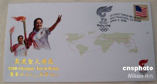 圖:華人設(shè)計師魏進(jìn)發(fā)設(shè)計圣火傳遞舊金山首日封(2)