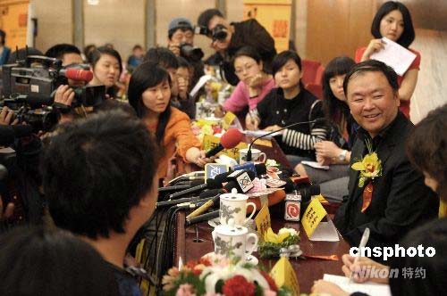 4月17日,新《三國(guó)演義》電視劇在北京召開(kāi)新聞發(fā)布會(huì),中國(guó)導(dǎo)演高希希正式出任總導(dǎo)演,媒體記者爭(zhēng)相采訪高希希。他表示“接手《三國(guó)演義》圓了自己兒時(shí)的一個(gè)夢(mèng)想”,“司馬懿之死就是該劇的結(jié)束。他代表著三國(guó)時(shí)代的終結(jié),中國(guó)統(tǒng)一時(shí)代的來(lái)臨”。高希希曾執(zhí)導(dǎo)過(guò)《歷史的天空》、《搭錯(cuò)車》、《新上海灘》、《甜密密》等熱門(mén)電視劇。據(jù)悉,該劇是迄今為止中國(guó)電視史上投資數(shù)額最大的電視劇之一。當(dāng)日,中共中央宣傳部、國(guó)家廣電總局的有關(guān)官員出席了發(fā)布會(huì)。中新社發(fā) 廖攀 攝