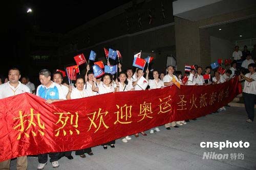 圖:中國(guó)駐泰國(guó)使館人員喜迎奧運(yùn)圣火