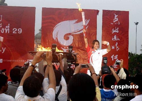 圖:北京奧運(yùn)圣火在曼谷傳遞順利結(jié)束 (2)