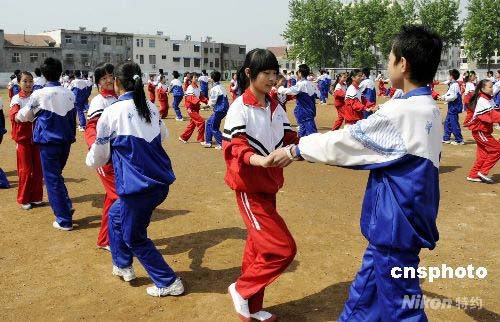 圖:山東棗莊中小學(xué)生跳起校園集體舞迎奧運(yùn)(2)