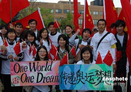 圖:奧運(yùn)圣火在長(zhǎng)野受到在日留學(xué)生歡迎