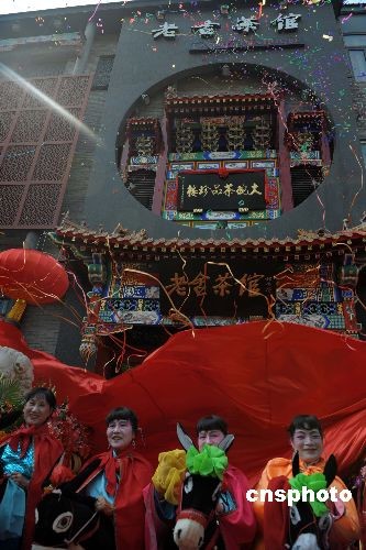 4月27日,為了迎接奧運(yùn)賓朋重裝一新的北京老舍茶館重新開張。當(dāng)日,老舍茶館舉辦第五屆茶文化節(jié)。據(jù)了解,近期北京眾多餐飲等第三產(chǎn)業(yè)商戶重裝改造迎接北京奧運(yùn)所帶來的消費(fèi)熱潮。 中新社發(fā) 廖攀 攝
