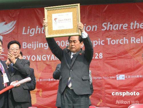 組圖:北京奧運(yùn)圣火在朝鮮平壤傳遞(11)