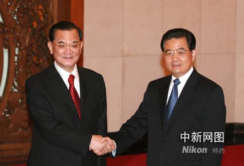 圖:胡錦濤會(huì)見(jiàn)中國(guó)國(guó)民黨榮譽(yù)主席連戰(zhàn)