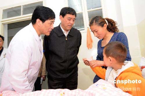 安徽省阜陽市委書記宋衛(wèi)平等,在阜陽市人民醫(yī)院看望病兒及其家屬。中新社發(fā) 張婭子 曹炯 攝