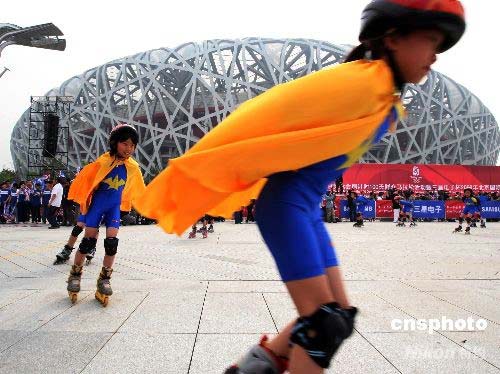 北京隆重慶祝奧運會倒計時100天 。中新社發(fā) 宋吉河 攝