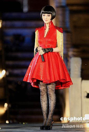 范冰冰現(xiàn)場(chǎng)獻(xiàn)歌。中新社發(fā) 趙振清 攝