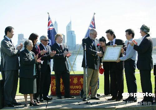 13個西澳華人社團的代表向西澳參加北京奧運的運動員捐贈了五萬澳幣(近四十萬人民幣),表達西澳洲華人對澳大利亞體育事業(yè)的支持。 中新社發(fā) 高周丹 攝