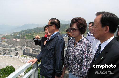 五月四日,中國國民黨榮譽(yù)主席連戰(zhàn)偕夫人連方瑀,參觀訪問三峽大壩,并欣然為三峽工程題詞:“造奇工,利天下!边B戰(zhàn)對(duì)三峽工程發(fā)揮的巨大效益表示欽佩,稱贊三峽工程是中華兒女共同的榮耀。中國國民黨副主席林豐正、海協(xié)常務(wù)副會(huì)長李炳才以及湖北省、宜昌市等當(dāng)?shù)赜嘘P(guān)人員陪同參觀訪問。中新社發(fā) 艾啟平 攝
