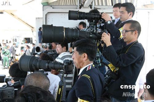 數(shù)百名中日及國(guó)際媒體記者到機(jī)場(chǎng)采訪胡主席抵達(dá)。中新社發(fā) 齊彬 攝