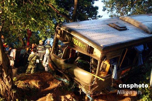 5月8日凌晨5時(shí)許,重慶主城一公交車墜橋沖下護(hù)坡,致車上14人受傷,其中10重傷,4人輕傷。據(jù)稱,事故車輛為牌號(hào)渝A25732的702路公交車,事故發(fā)生時(shí),該車輛正由渝中區(qū)駛往江北區(qū)方向,途徑嘉陵江大橋北橋頭時(shí),沖下10米高的護(hù)坡。事故公交車線路是由重慶市朝天門駛往沙坪壩區(qū),途中不經(jīng)過江北區(qū),該車輛屬于跨線運(yùn)營(yíng)。中新社發(fā) 郭晉嘉 攝