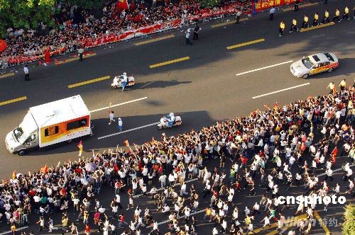 圖:深圳百萬市民追逐奧運火炬?zhèn)鬟f (3)