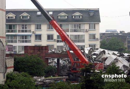 汶川地震災(zāi)區(qū)都江堰市因災(zāi)造成很大的破壞。圖為5月13日拍攝的都江堰受災(zāi)非常嚴(yán)重的中醫(yī)院。中新社發(fā) 黃榮 攝