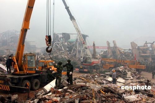 組圖:空降兵用重型機(jī)械清理地震廢墟