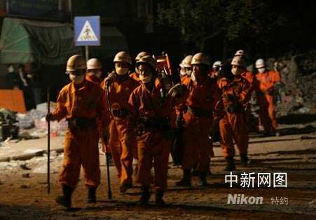 中新網(wǎng)杭州5月16日電(王亮 江耘) 今天,距離汶川大地震發(fā)生時(shí)已經(jīng)超過72個(gè)小時(shí),雖然最佳搶救生命的時(shí)間已經(jīng)過去,但是搶救部門依舊沒有放棄每一個(gè)生命。他們?nèi)找岳^日,奮戰(zhàn)在廢墟瓦礫當(dāng)中。