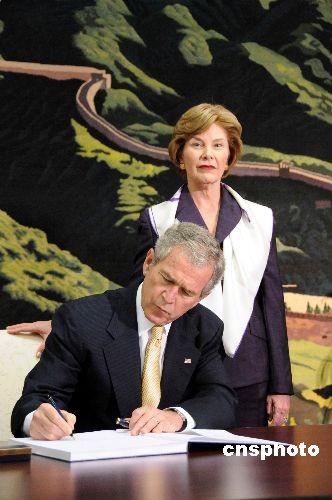 美國總統(tǒng)布什前往中國駐美大使館吊唁地震遇難者