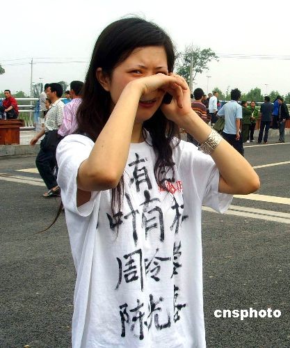 綿陽市抗震救災(zāi)最大的救助點九州體育館容納了2萬多名來自北川、安縣等地的災(zāi)民, 5月15日上午,北川地震災(zāi)民家屬葉婷焦急地尋找親人。 霍潺 攝