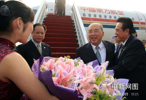 中國(guó)國(guó)民黨主席吳伯雄率團(tuán)抵達(dá)南京 陳云林接機(jī)
