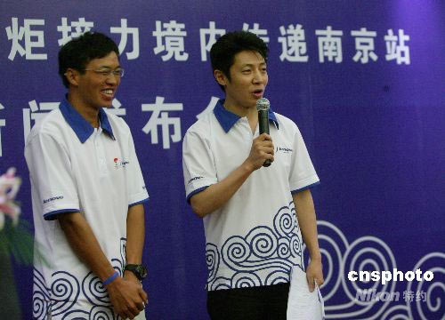 圖:奧運(yùn)火炬手陳佩斯、撒貝寧亮相南京(4)