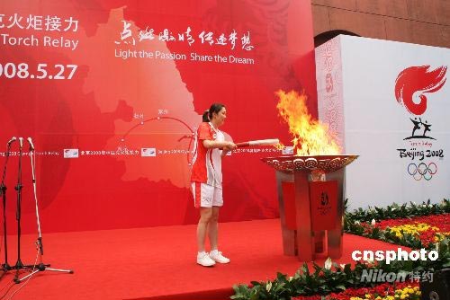 圖:排球名將孫玥點(diǎn)燃圣火盆