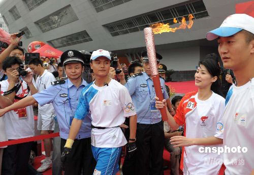 圖為第一棒火炬手跳水世界冠軍李娜在安徽國際會展中心起跑。中新社發(fā) 廖攀 攝